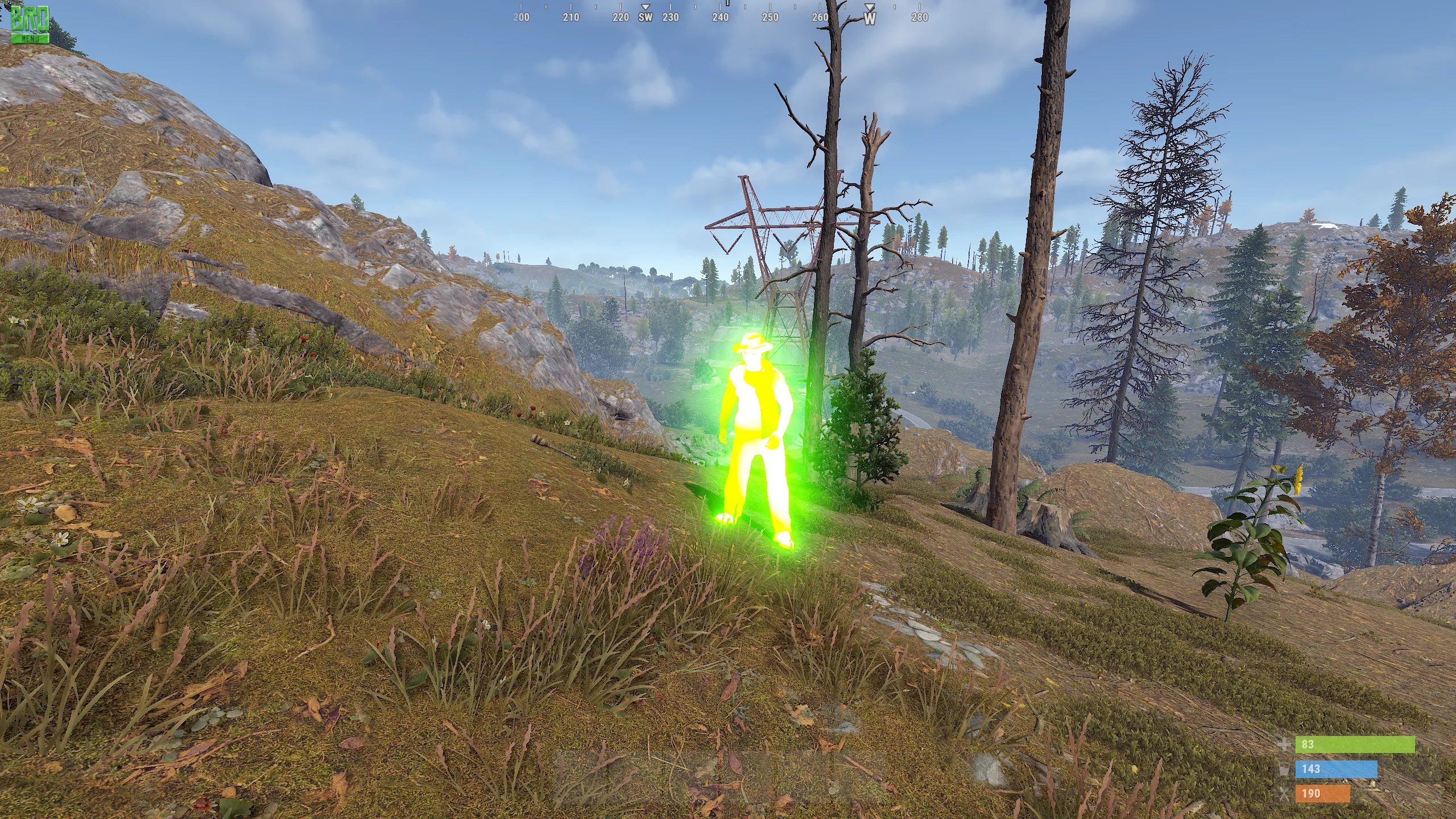 Phoenix Rust Chams is an extremely concise solution focused on safety and stability. The function allows seeing players and NPCs through walls and environmental objects. Visible characters are highlighted in bright green, while those behind cover are highlighted in white, helping to instantly assess the situation.
